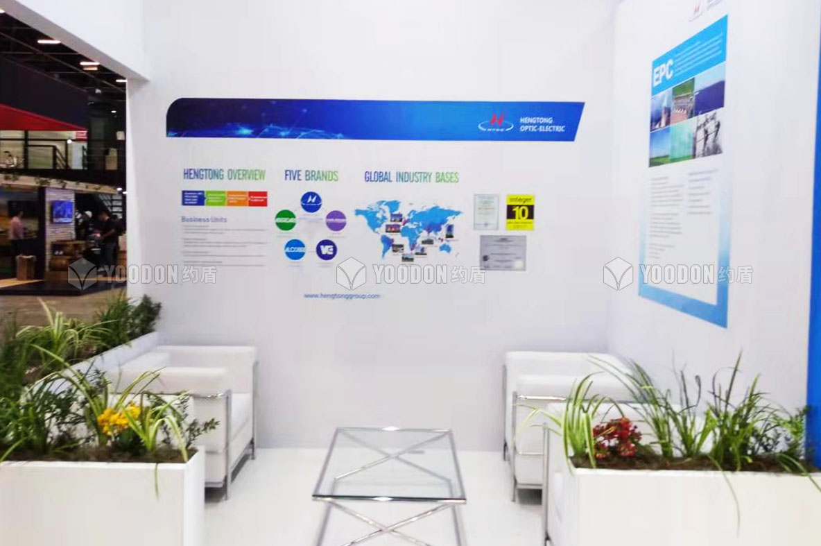 本屆展會約盾展覽為亨通光電提供了展位設計搭建服務,亨通光電,是服務于光纖光網和電力電網及網絡建設運營、金融投資、新能源、新材料等多元領域的國家級創新企業,中國光纖網絡、電力電網領域規模最大的系統集成商與網絡服務商,全球光纖通信前三強。