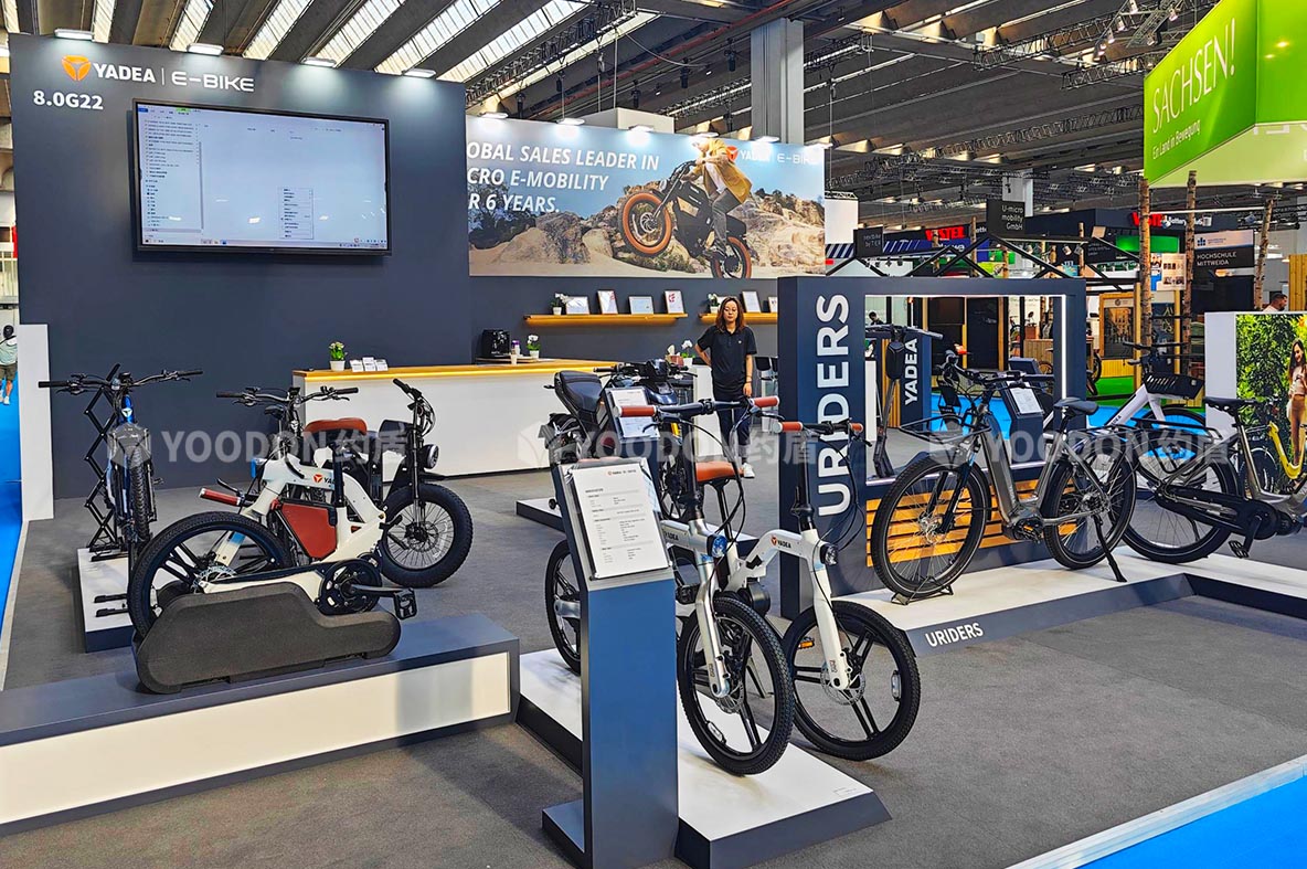 2023歐洲自行車展覽會(EUROBIKE)于2023年6月21日至6月25日在德國法蘭克福會展中心舉辦,促進了自行車運動在全球的發(fā)展。約盾展覽德國展臺搭建方案根據(jù)客戶需求,以生活時尚簡約設(shè)計方向,打造出雅迪國際范品牌形象!
