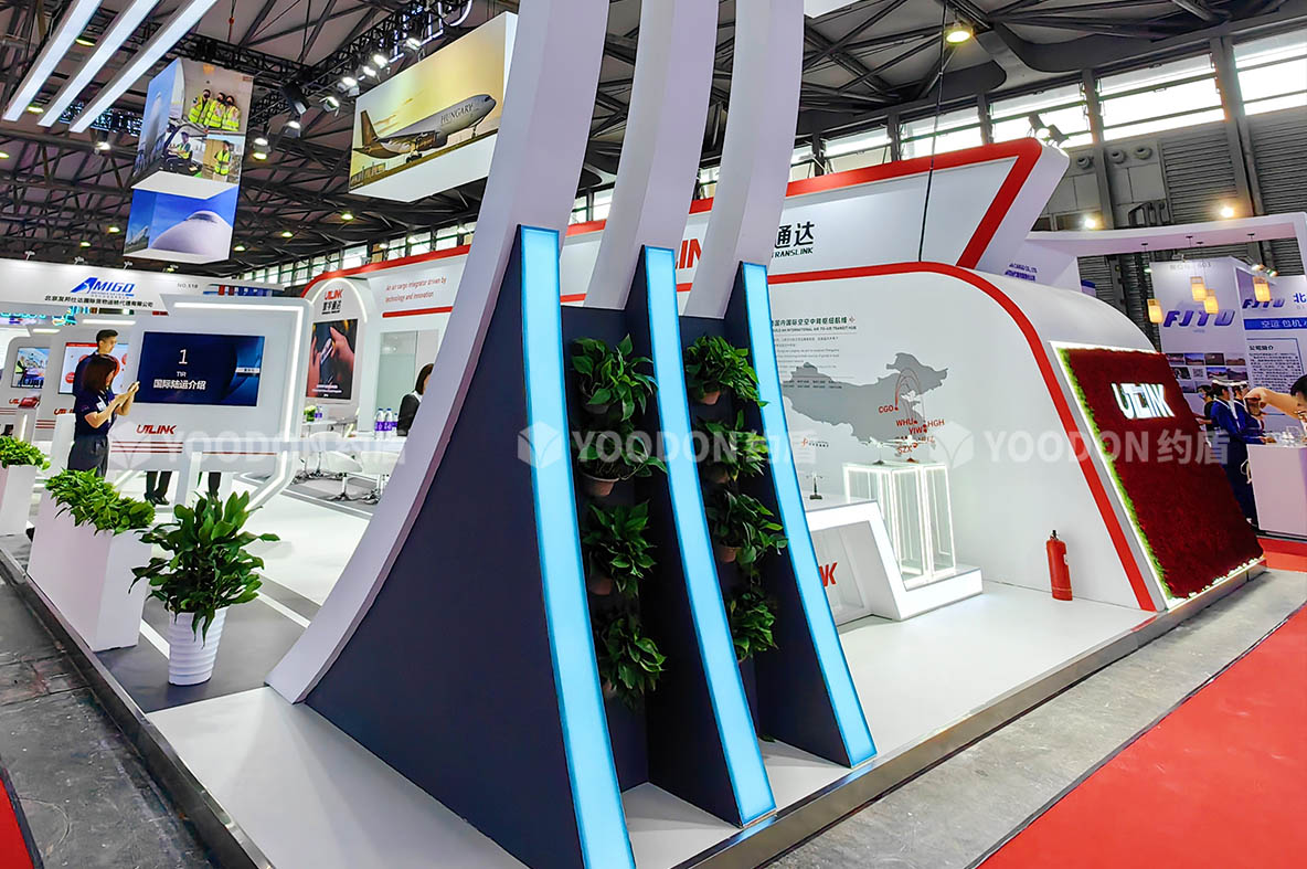 展位從不同角度都通透明亮,非常吸睛,多處LED大屏幕、柔性燈帶冰屏使用,讓展臺動感起來,玫瑰花展臺的設計更是新穎之處,擴大視覺的同時大氣渲染了寰宇通達的國際品牌形象,聚擾眼球,給參展觀眾帶來不一樣的視覺盛宴。