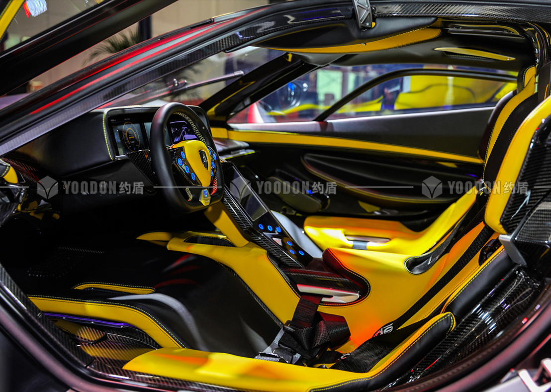 展臺設計思路皆尊崇速度感與獨特感,整體造型設計跳出常規(guī)邏輯,使人耳目一新,傾斜的異形吊頂仿佛是受到跑車高速行進的風速影響,在靜止的空間內帶來極致的動態(tài)感受,與展品的特性、造型等達到各方面的契合。