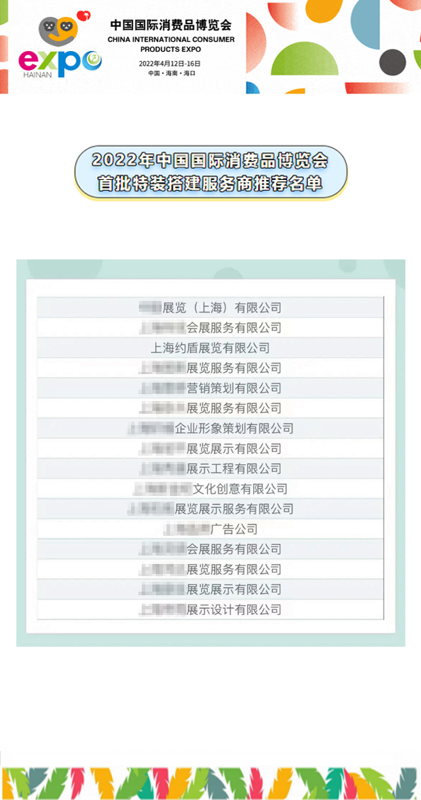 約盾展覽憑借著15年的全球運營經(jīng)驗,入選“2022年中國國際消費品博覽會”特裝搭建商,上海區(qū)排名第三。約盾將會用專業(yè)的設計搭建團隊,為客戶帶來蕞優(yōu)的體驗。